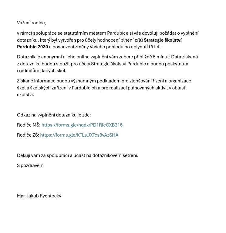 Zřizovatelem mateřské školy je Statutární město Pardubice.